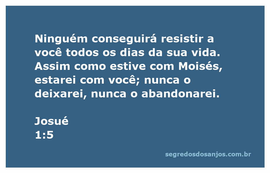 Ninguém conseguirá resistir a você todos os dias da sua vida. Assim como estive com Moisés, estarei com você; nunca o deixarei, nunca o abandonarei.