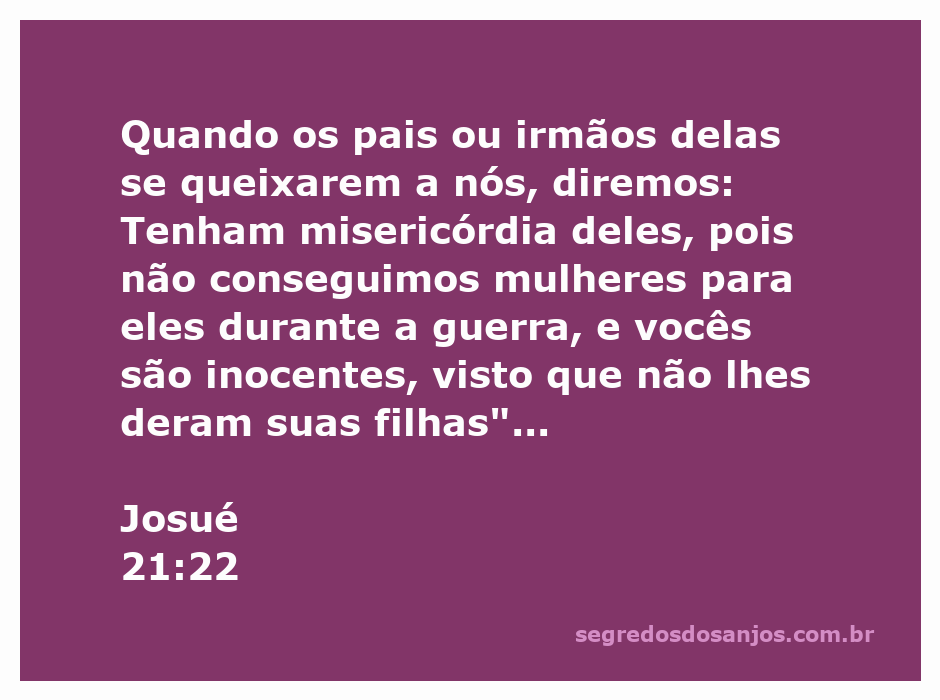 Quando os pais ou irmãos delas se queixarem a nós, diremos: Tenham misericórdia deles, pois não conseguimos mulheres para eles durante a guerra, e vocês são inocentes, visto que não lhes deram suas filhas”.